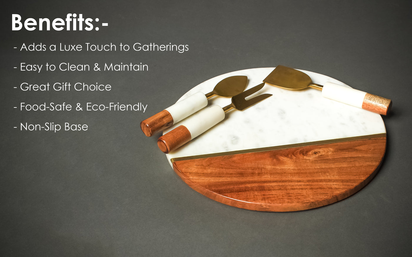 Premium Material Combination – Crafted from high-quality marble and acacia wood, this board ensures durability while adding a luxurious aesthetic to your table.