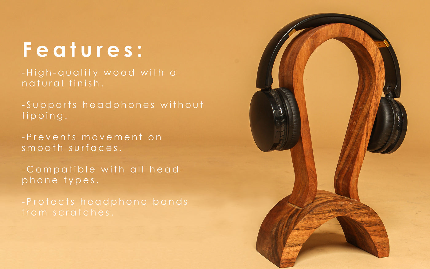 - Use :- This wooden headphone stand prevents dust from gathering on your headphones, which can cause scratches over time from resting on a table.