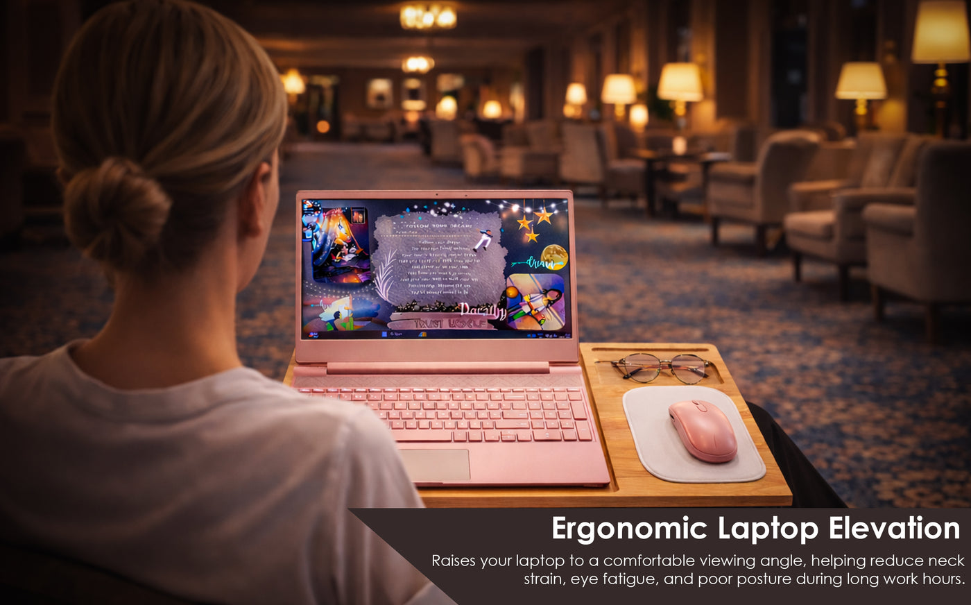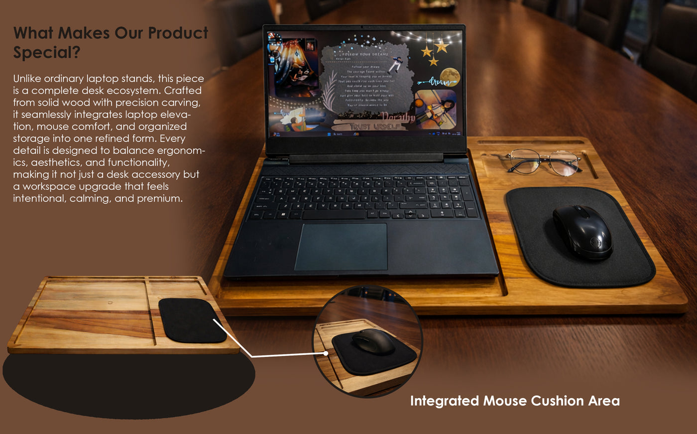 Lightweight, Strong & Heat-Dissipating – Portable yet sturdy construction with a wooden surface that helps disperse heat, keeping laptops cooler during extended use.