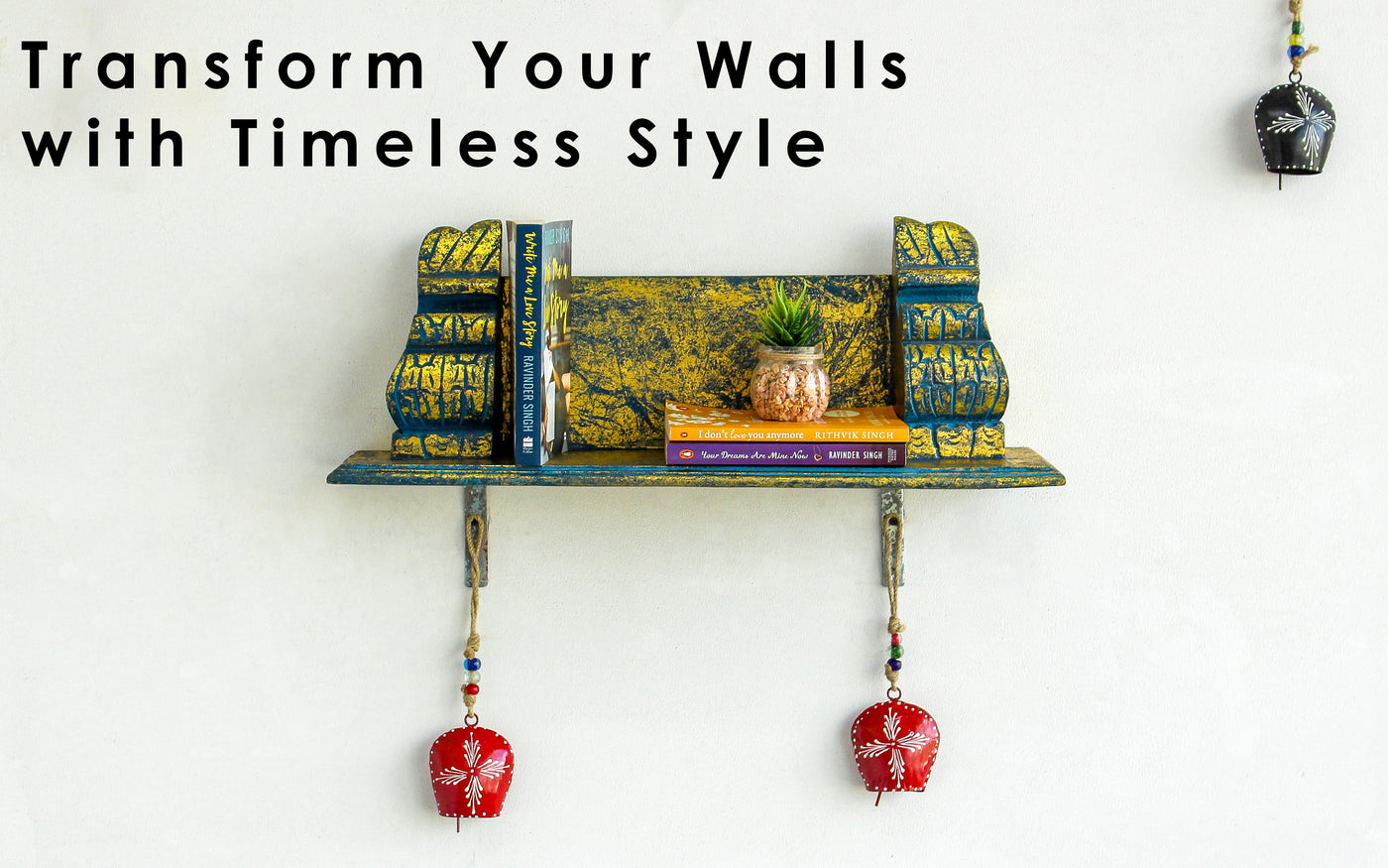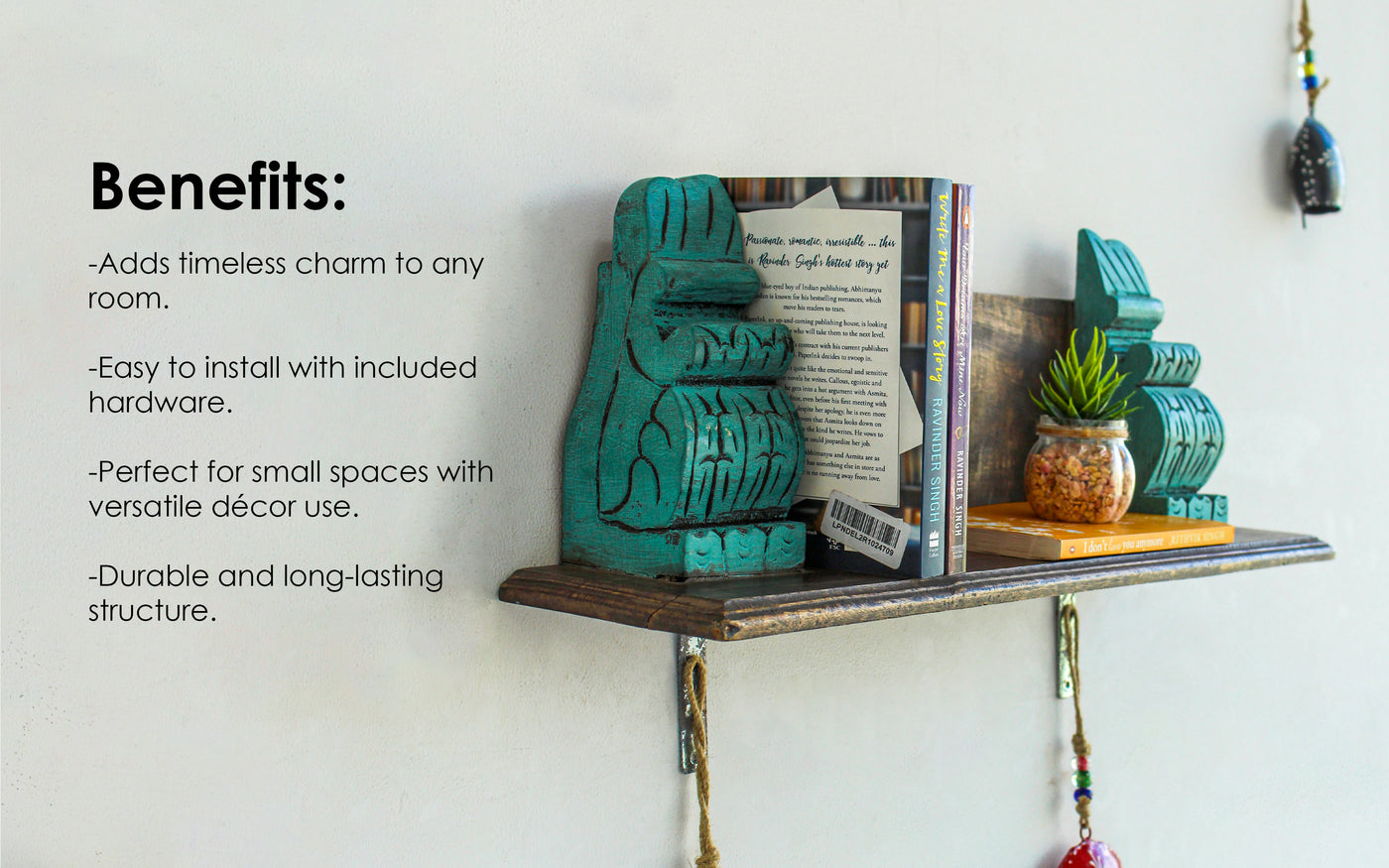 Antique-Style, Distressed Wooden, Wall Shelf, Rustic Blue, Aged Look, Decorative Carvings, Vintage Elegance, High-Quality Solid Wood, Durable Construction, Wall-Mounted Design, Space-Saving, Display Decor, Books