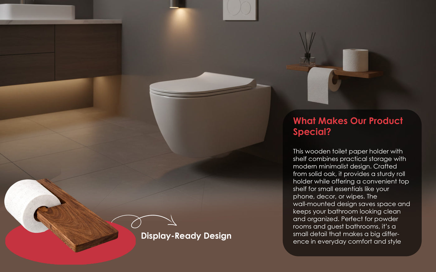Wooden Toilet Paper Holder with Shelf – Stylish Bathroom Roll Holder with Phone Stand
