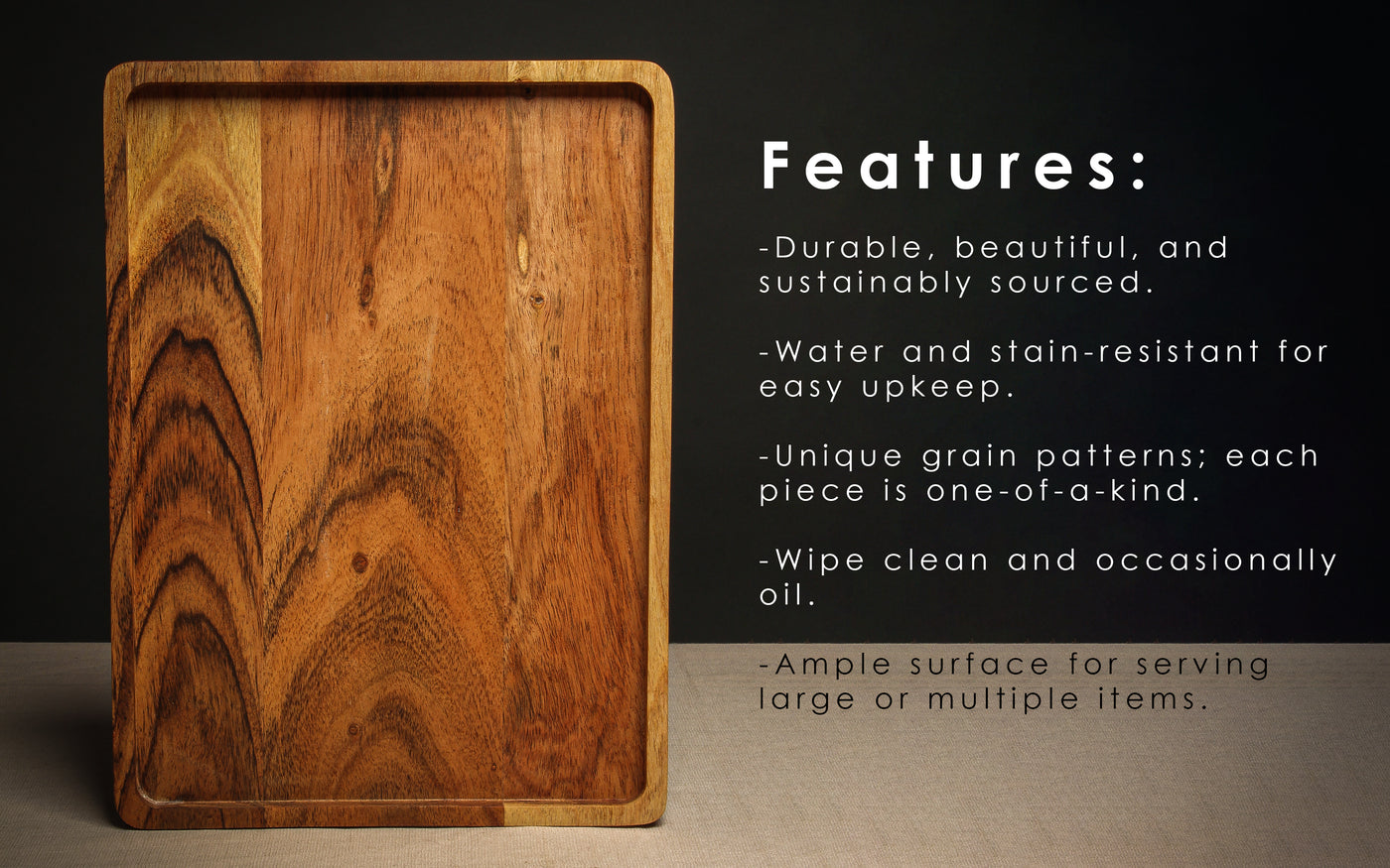 - Sturdy & Long-Lasting: Designed for regular use, this wooden serving platter is durable and maintains its beauty with proper care.