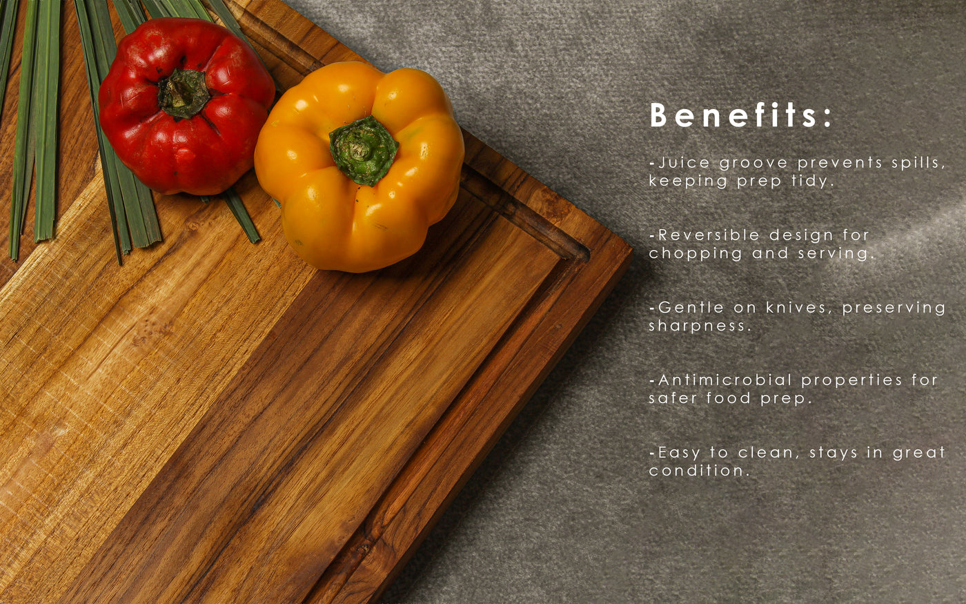 Teak Wood Chopping Board with Juice Groove – Kitchen Prep Essential (Large)