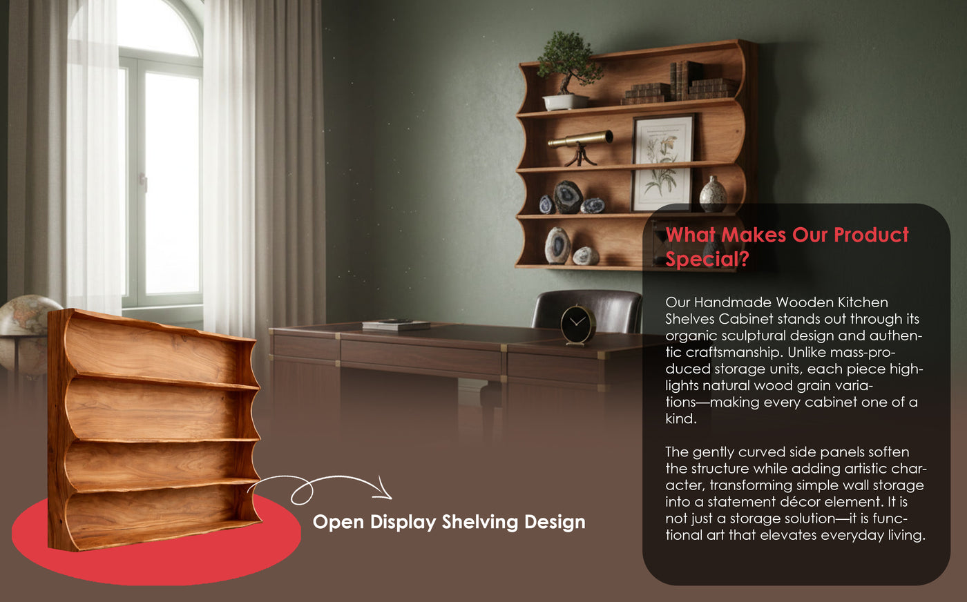 Handcrafted Solid Wood Wall Shelf – Elegant Floating Bookshelf for Living Room, Study & Office – Decorative Storage & Display Rack is backordered and will ship as soon as it is back in stock.