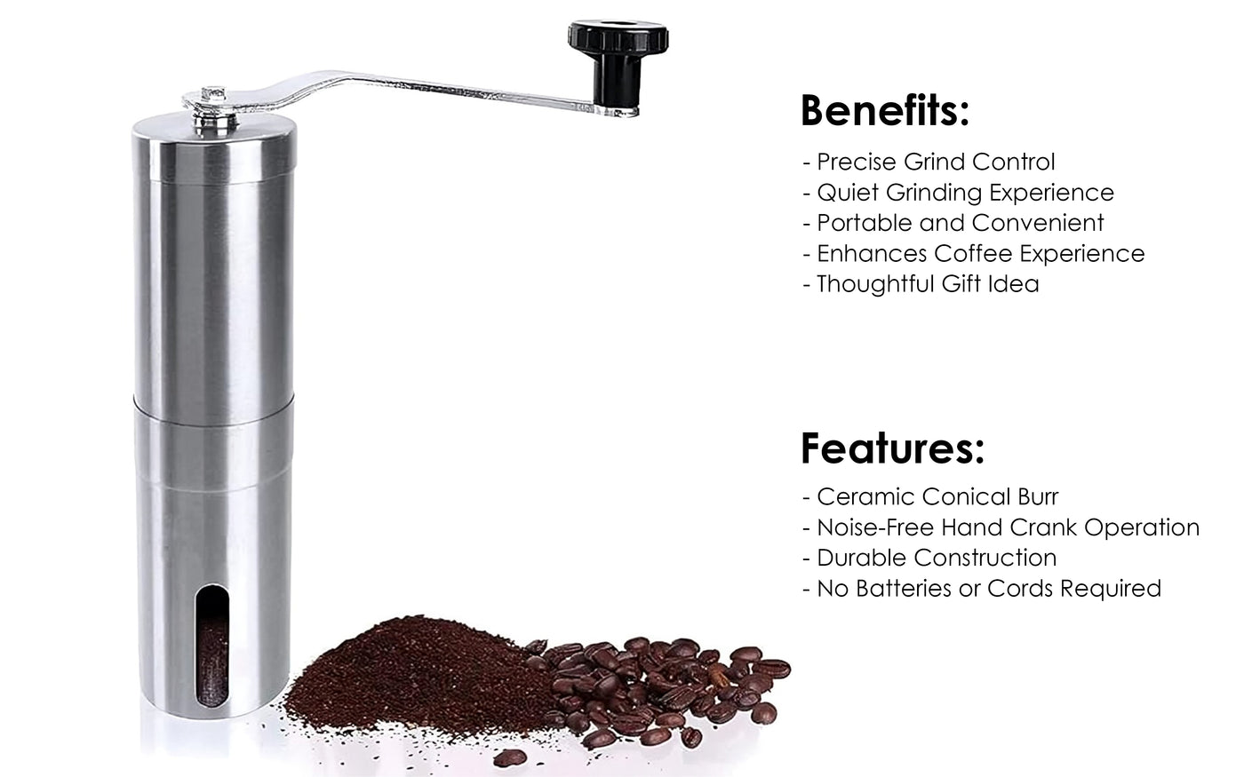 Portable Stainless Steel Coffee Grinder for kitchen, Manual & Adjustable, Travel-Friendly