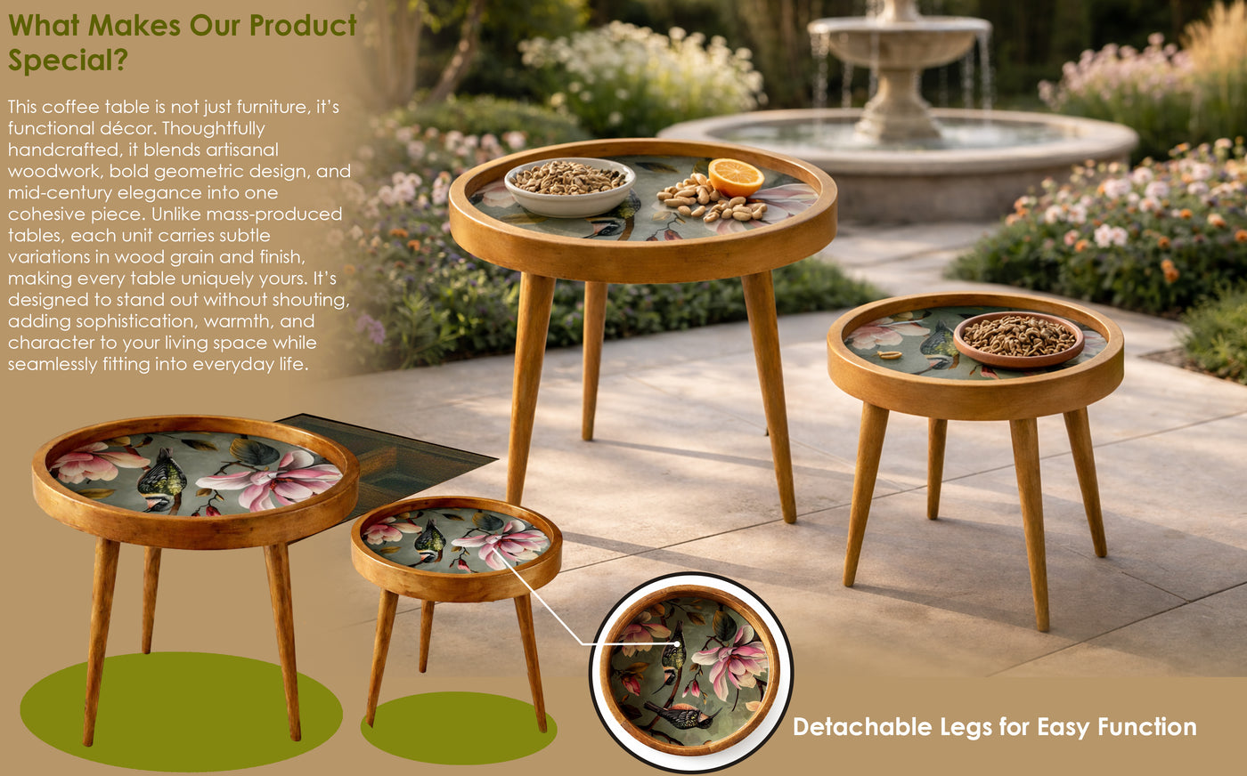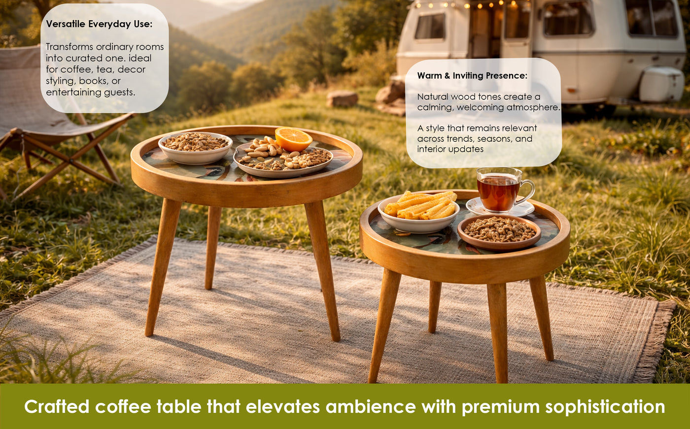 Handcrafted Solid Wood Table Set – Made from premium solid wood, this round coffee table set of 2 offers durability, natural grain beauty, and long-lasting strength.