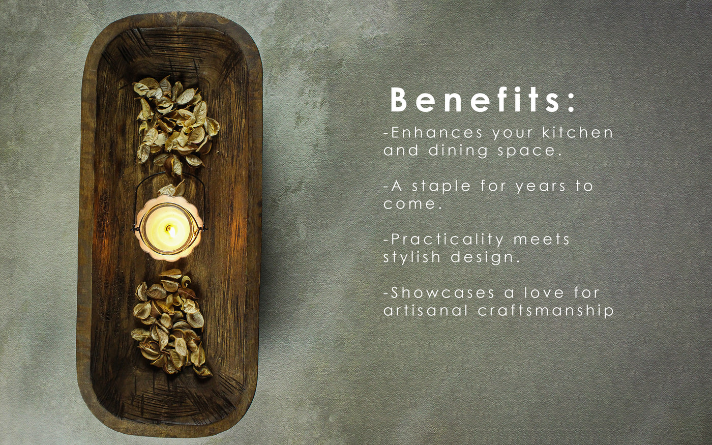 - Size-Before making a purchase, please verify the bowl's dimensions. 19 inches in length, 8 inches in width, and 3 inches in height. Since each of our products is made by hand, there is a possibility that the sizes will vary by a maximum of 0.5 inches.