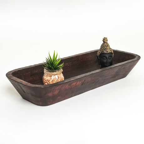 Rustic Wooden Dough Bowl – Handcrafted Decorative Centerpiece (20" x 8" x 3")