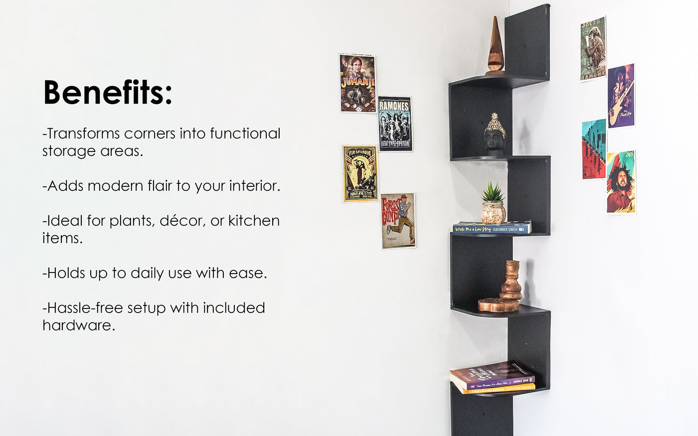 5-Tier Floating Corner Wall Shelf – Modern Storage Organizer Shelf (Black)