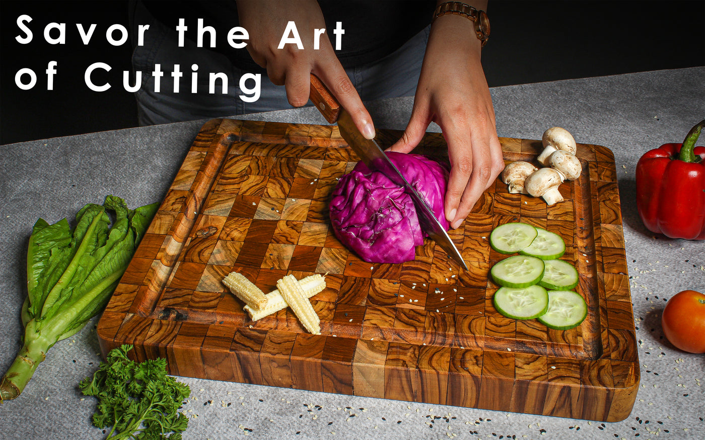 ✔️ End Grain Butcher Block Design: - The end-grain construction is knife-friendly, minimizing blade wear while enhancing the board’s durability, ideal for everyday use.