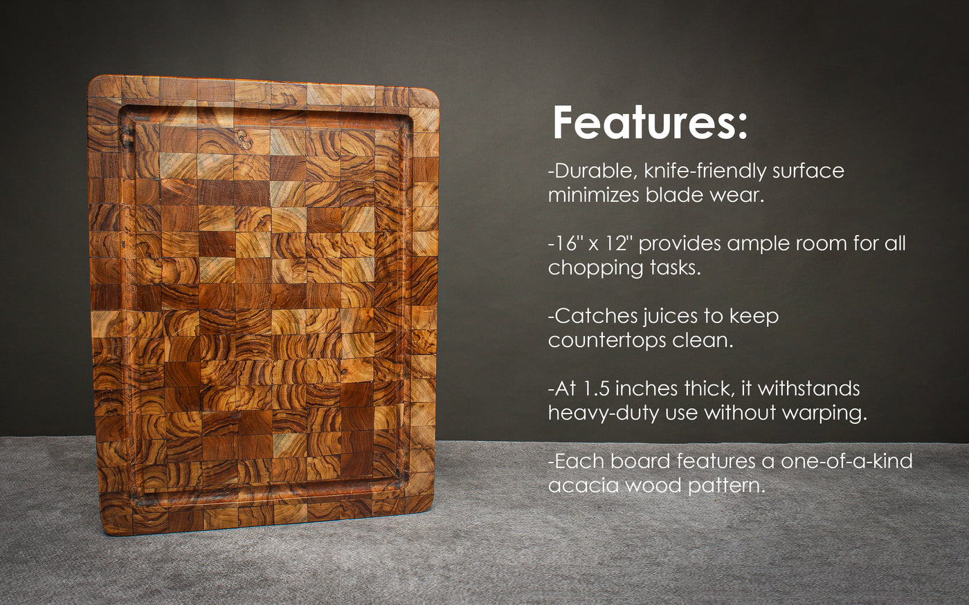 Acacia Chopping Board with Juice Groove – End Grain Cutting Board (16” x 12” x 1.5”)
