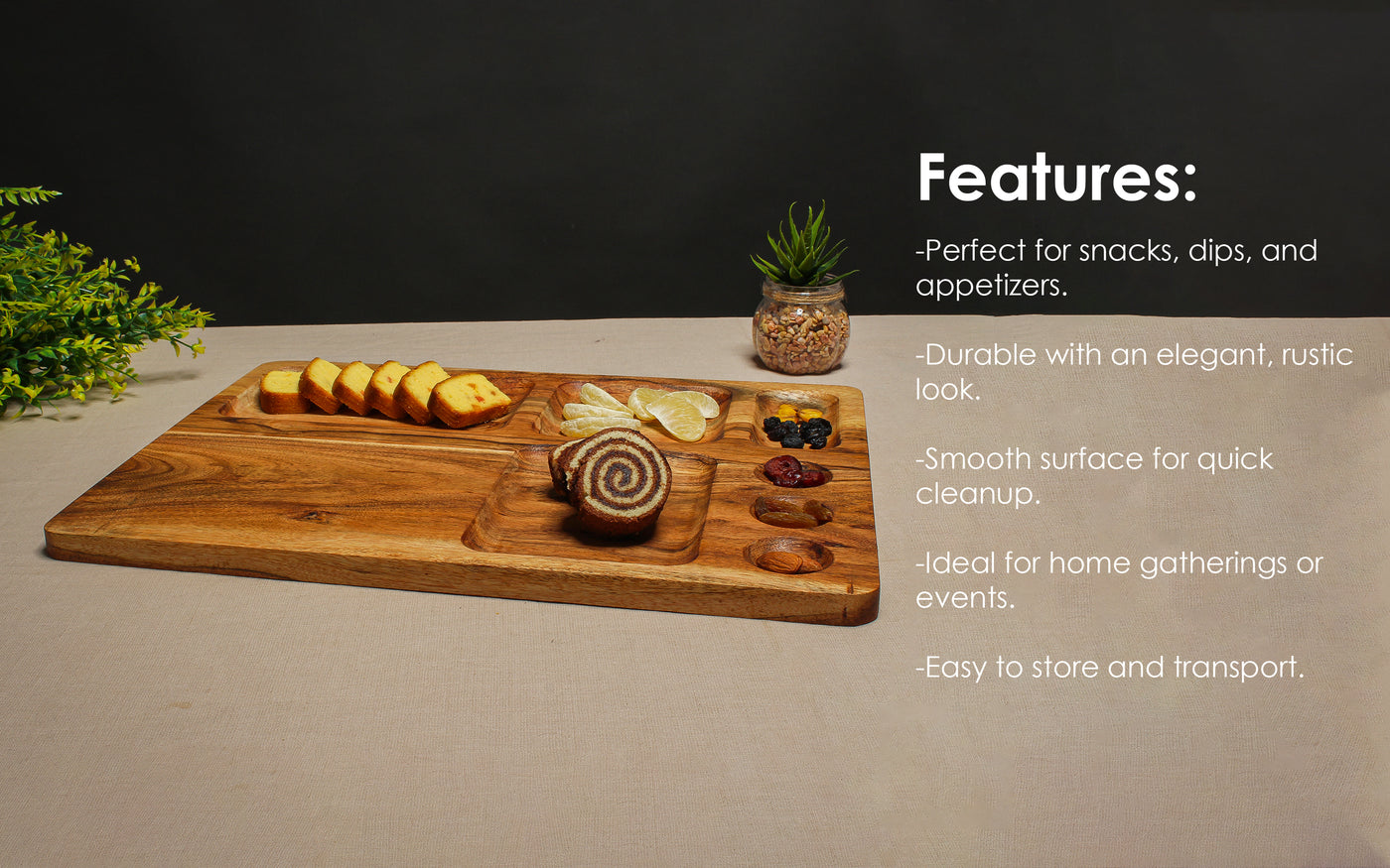 Acacia Serving Platter with Compartments – Perfect for Appetizers, Snacks & kitchen