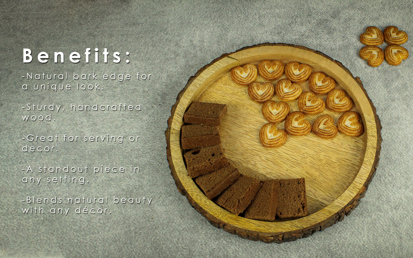 Rustic charm meets functionality: Elevate any gathering with this elegant wooden tray crafted from acacia wood, perfect for serving appetizers, snacks, and drinks. Whether for intimate dinners or family gatherings, it celebrates life's moments with style and the natural elegance of wooden craftsmanship.