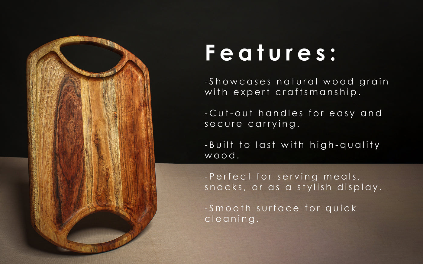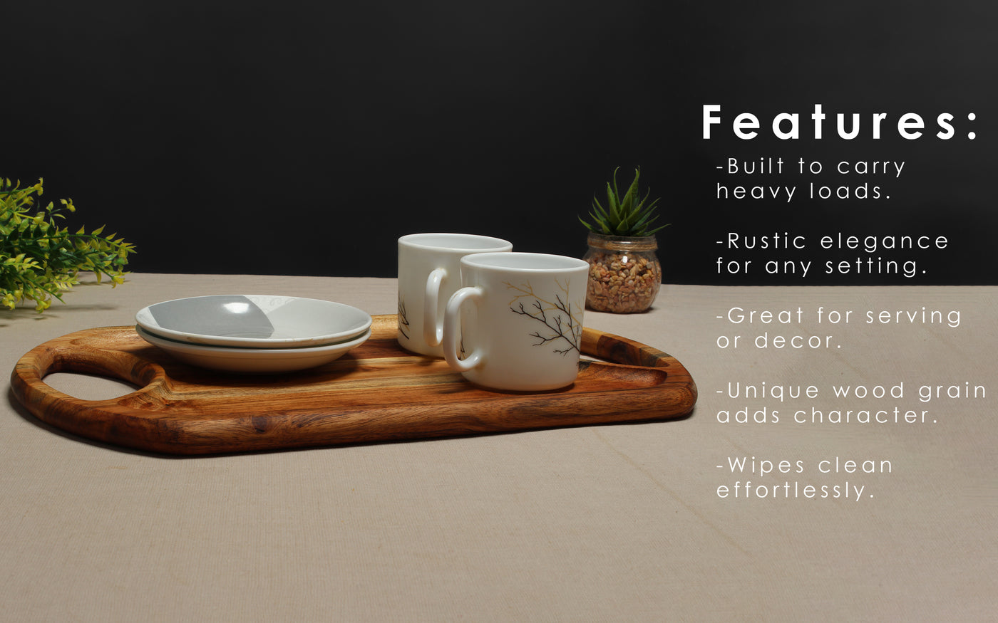 - Rustic & Modern Aesthetic: The natural wood grain and sleek design make this wooden tray an attractive addition to both rustic and contemporary home settings.