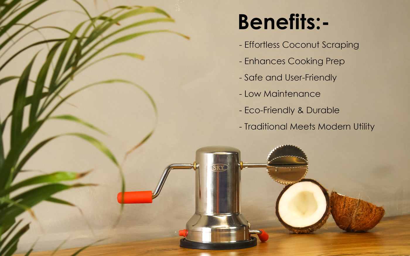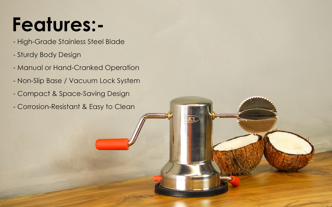 - Function: Effortlessly scrapes fresh coconut for chutneys, curries, and desserts