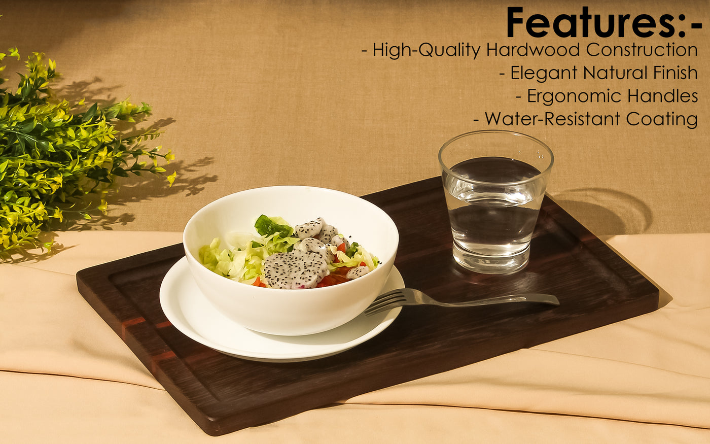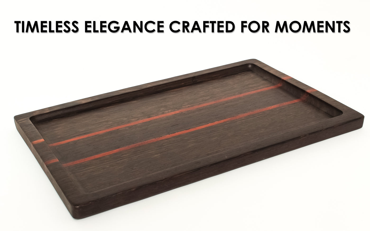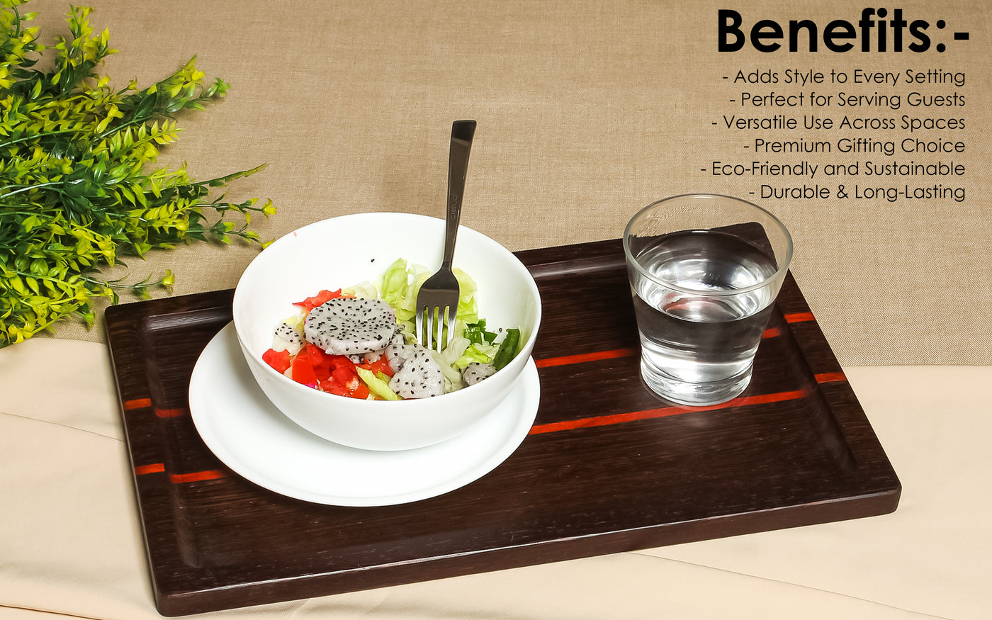 Handcrafted Dark Wooden Tray with Red Accent Lines – Durable & Stylish Serving Solution