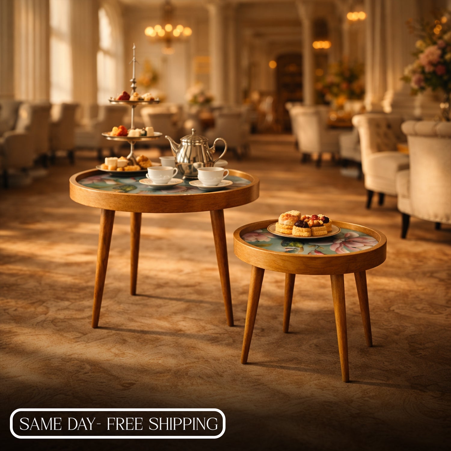 Handcrafted Solid Wood Table Set – Made from premium solid wood, this round coffee table set of 2 offers durability, natural grain beauty, and long-lasting strength.