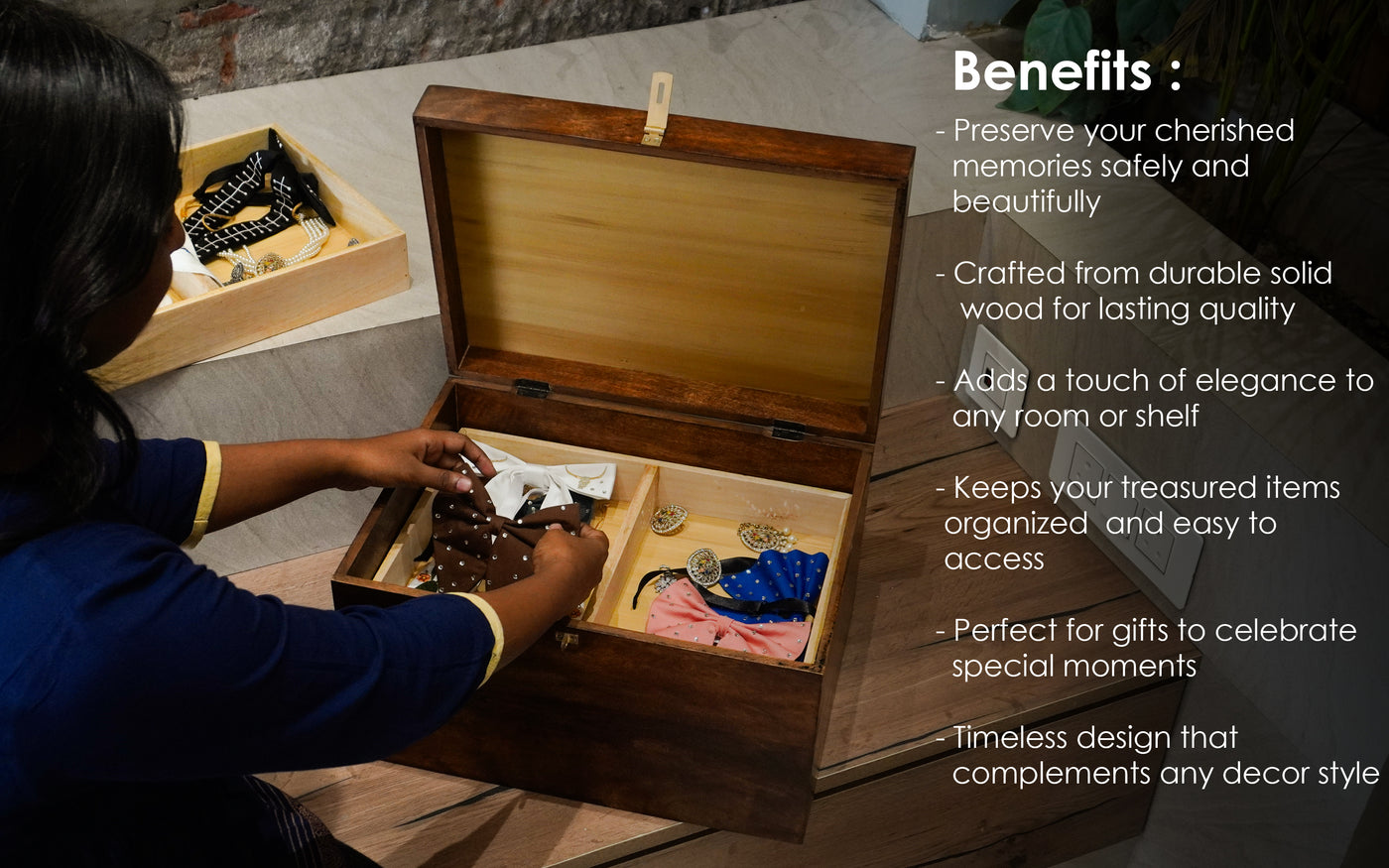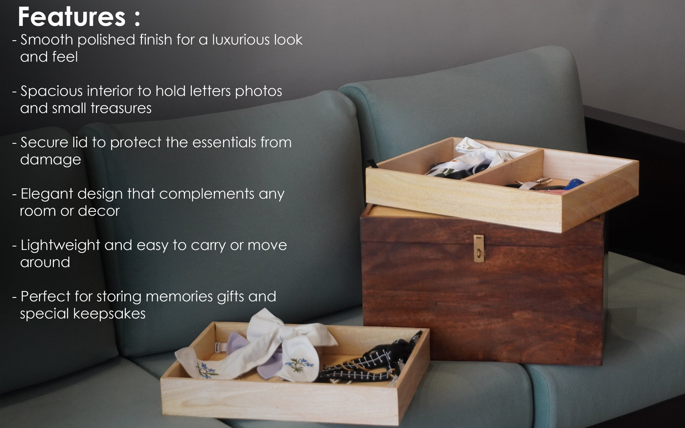 - Multi-purpose chest ideal for gifting, décor, and personal memory storage