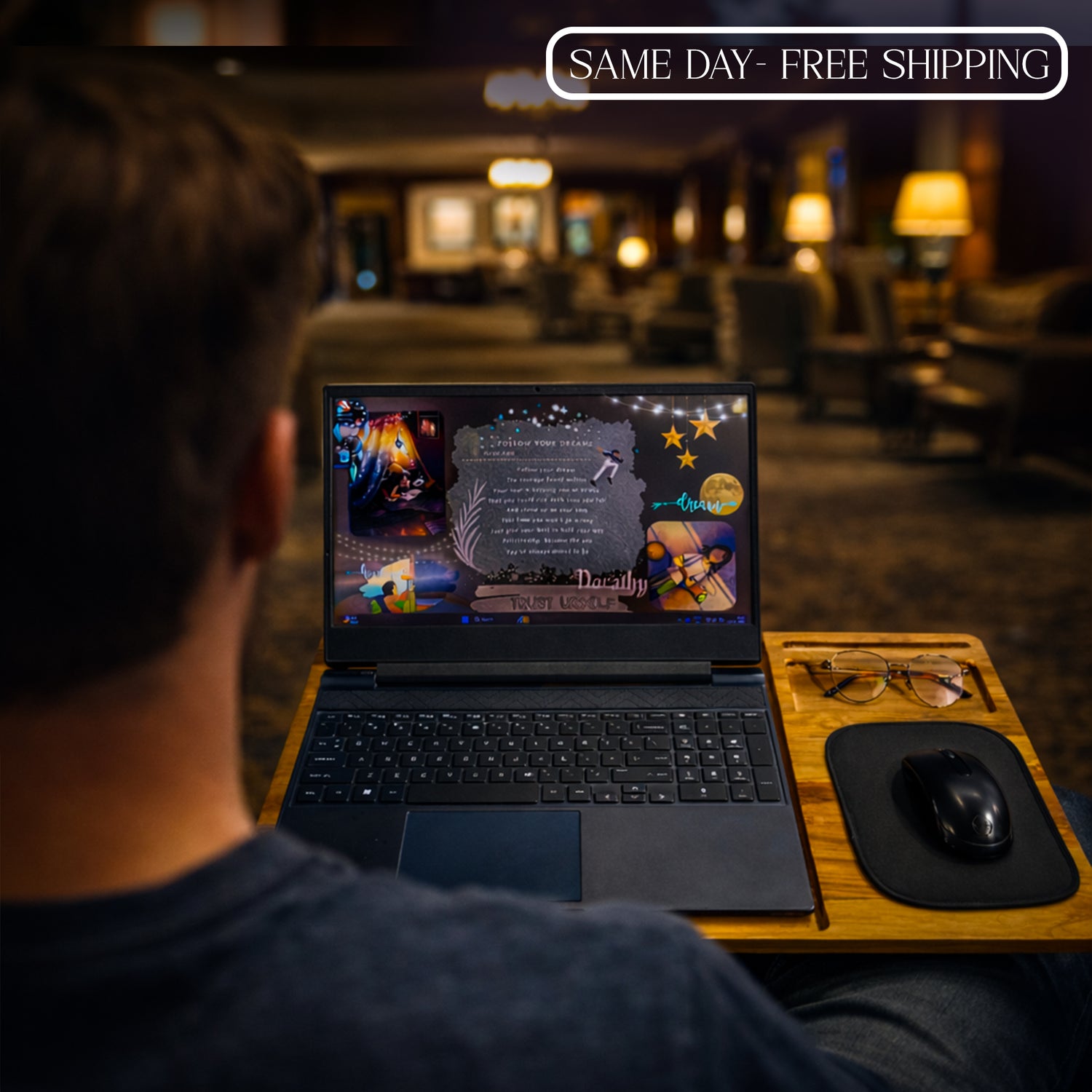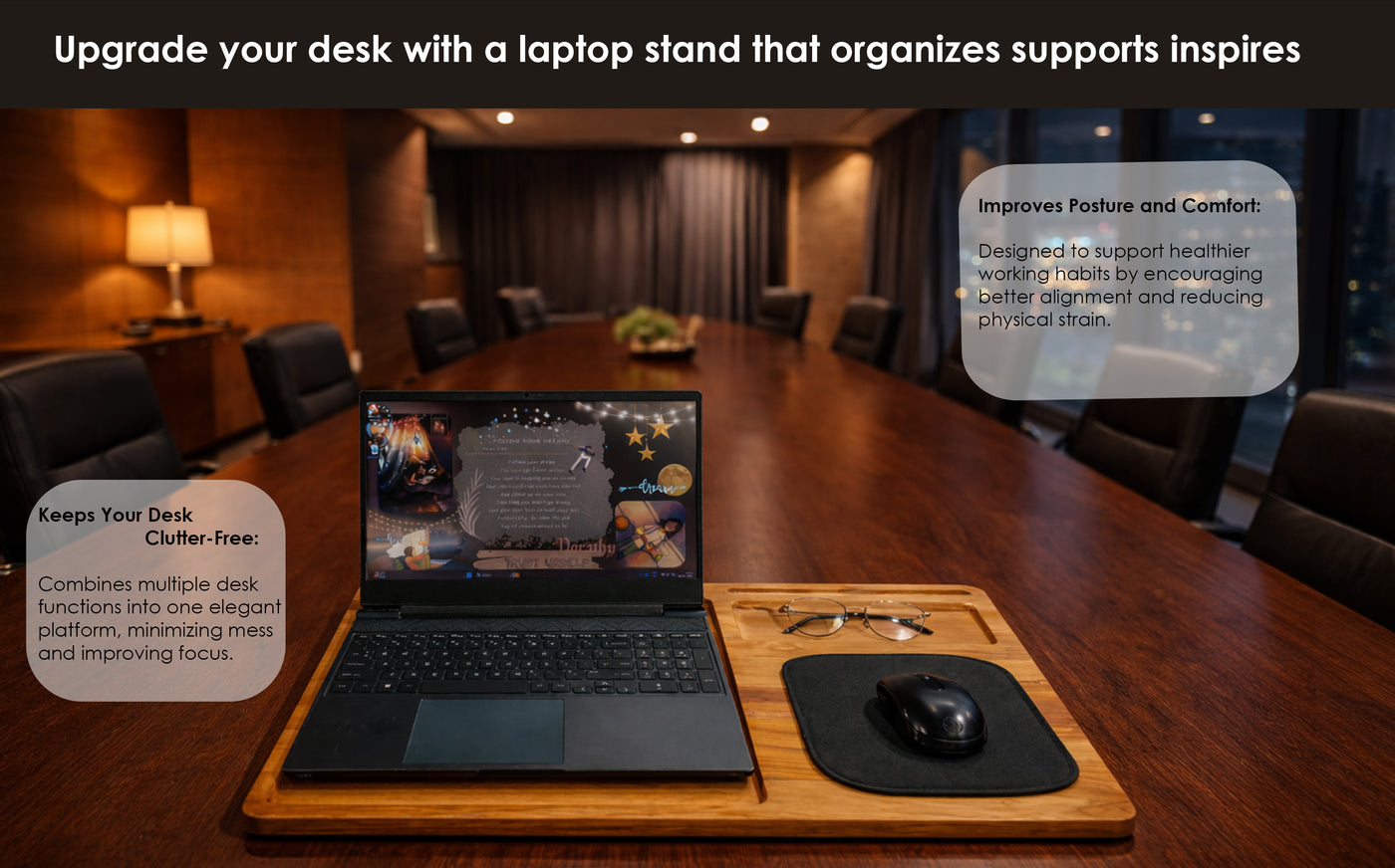 Lightweight, Strong & Heat-Dissipating – Portable yet sturdy construction with a wooden surface that helps disperse heat, keeping laptops cooler during extended use.