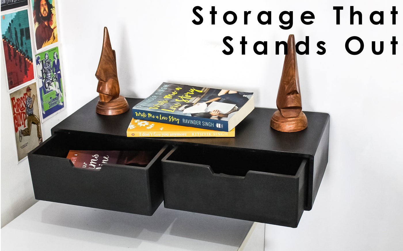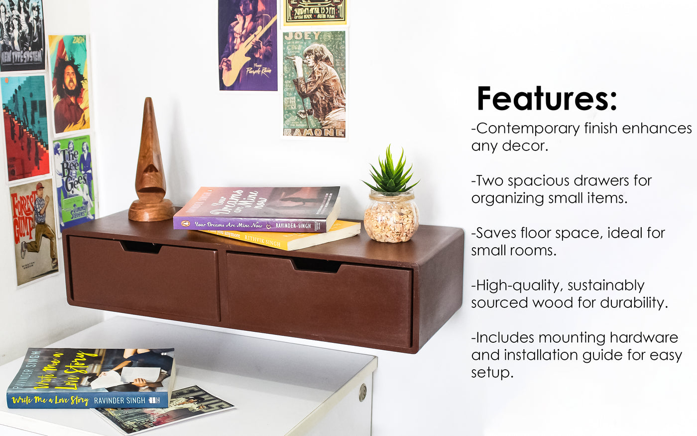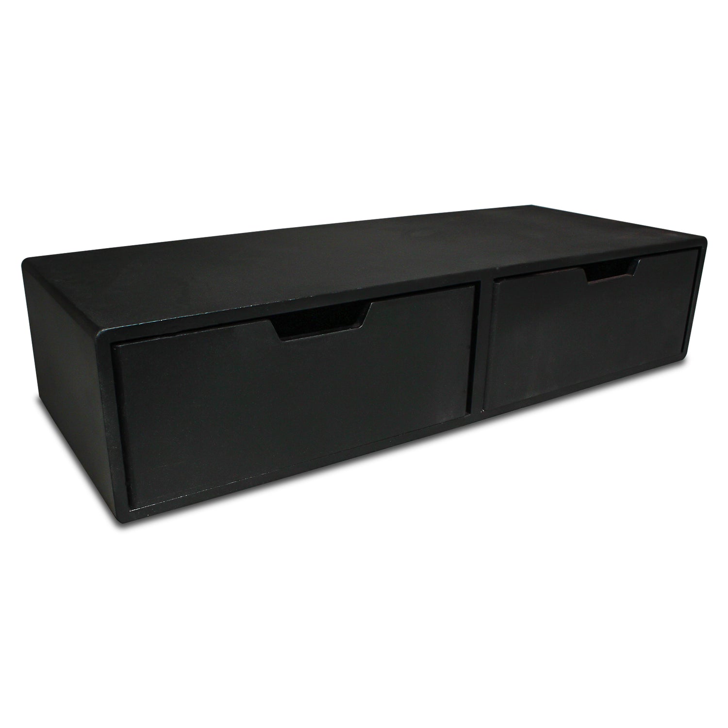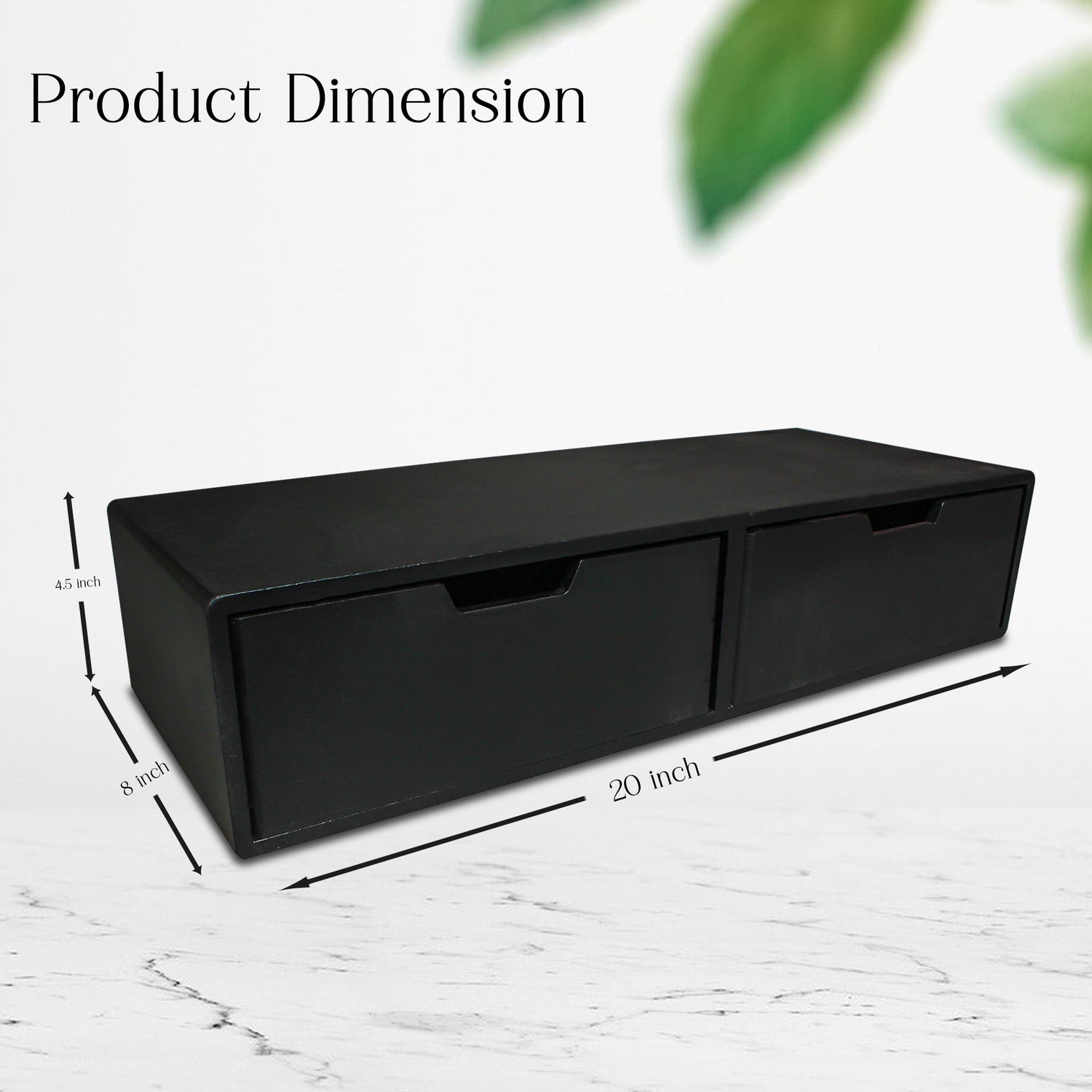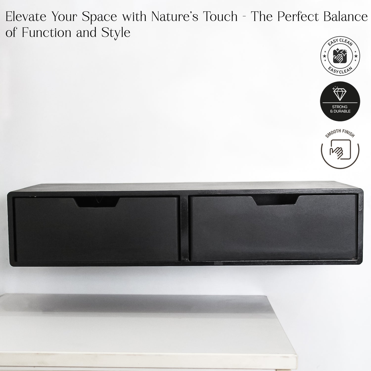 Modern Floating Wooden Dual Drawer - Wall-Mounted Storage Shelf (Black)