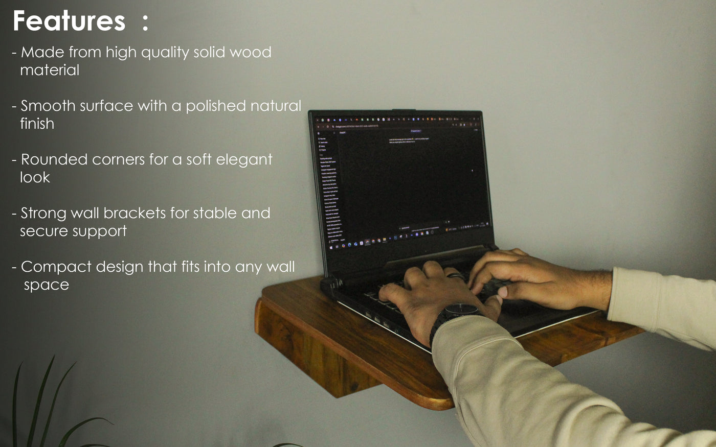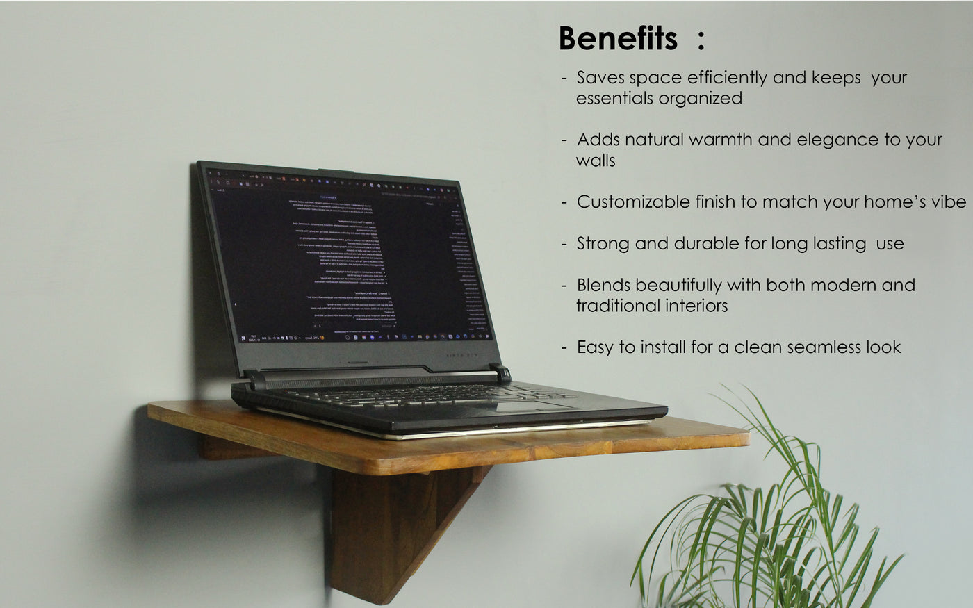Premium Wall-Mounted Wooden Laptop Shelf | Space-Saving Foldable Desk for Work-from-Home | Strong Support Stand | Smooth Finish | Study & Office Table for Small Spaces