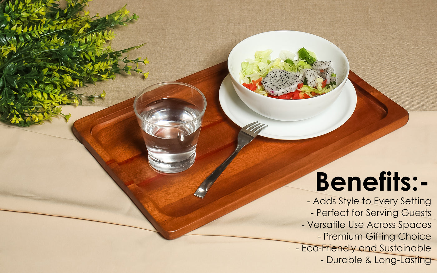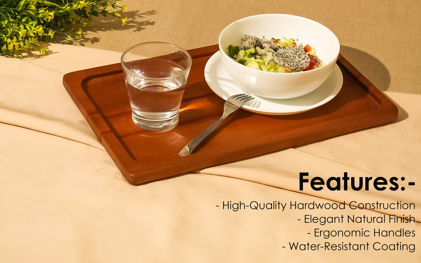 Premium Wooden Serving Tray - Strong, Durable & Smooth Finish for Elegant Dining