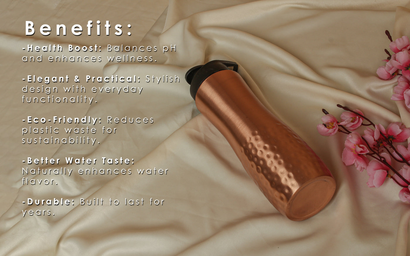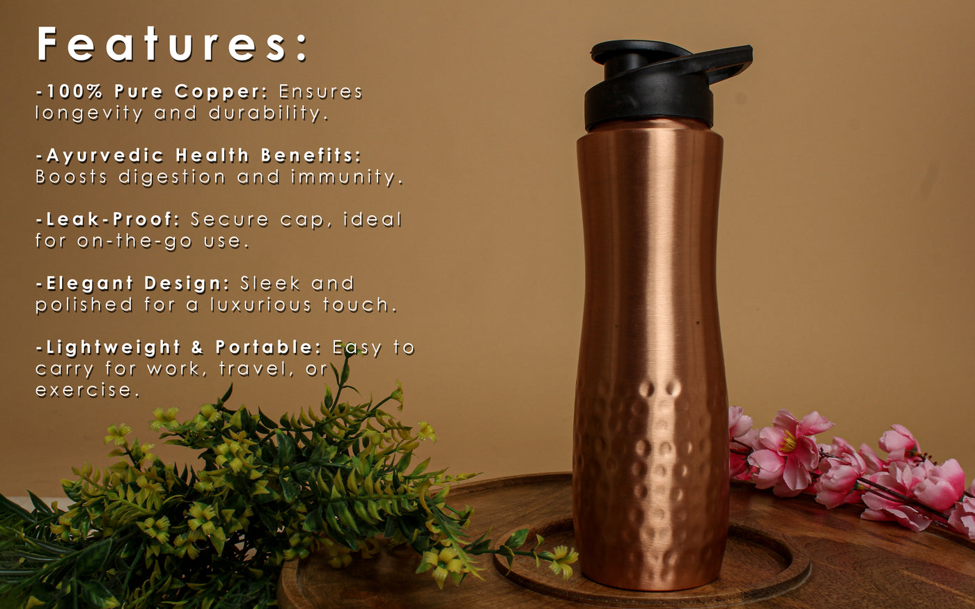 Pure Copper Sipper Water Bottle – Ayurvedic Health Benefits, Leak-Proof, Portable