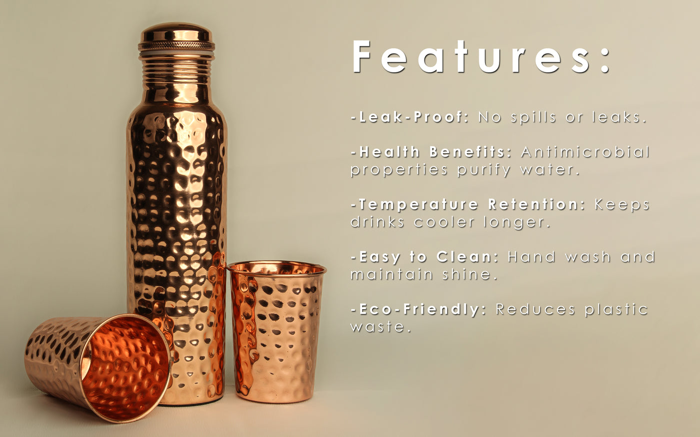 Pure Copper Water Bottle Set of 2 – Leak-Proof & Travel-Friendly with Health Benefits