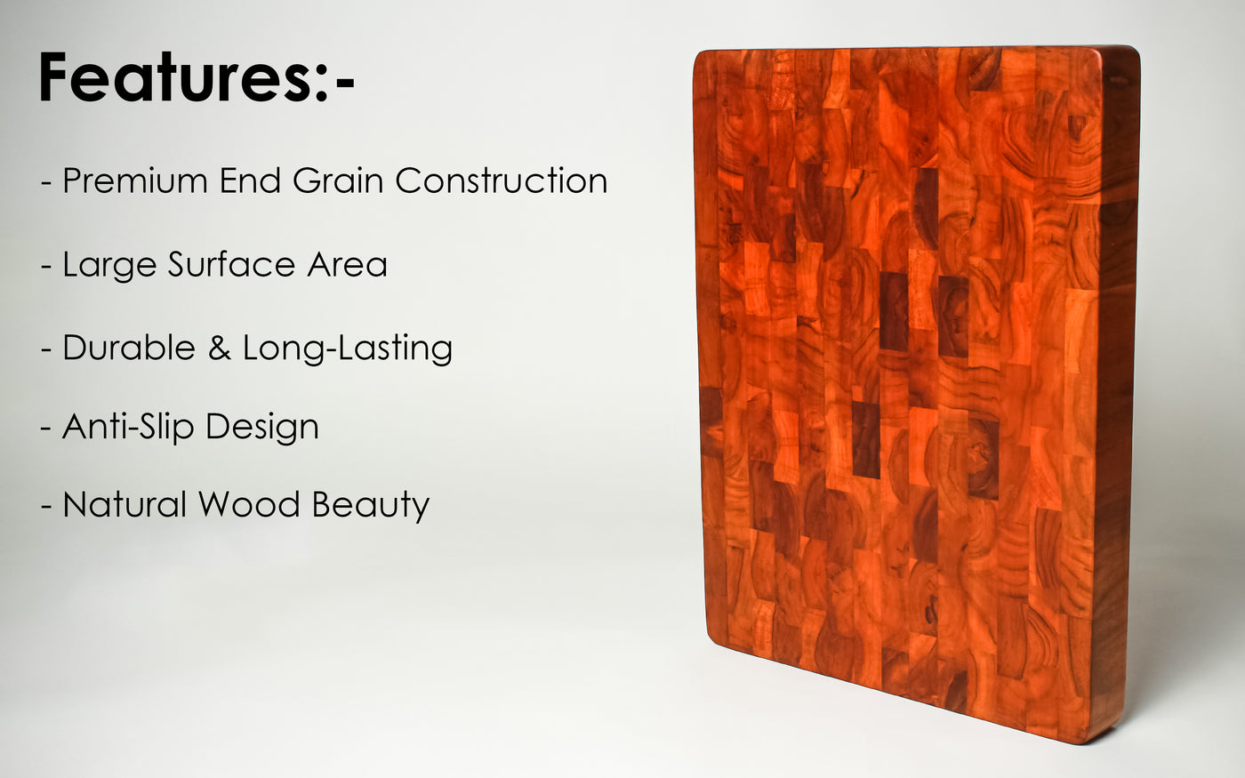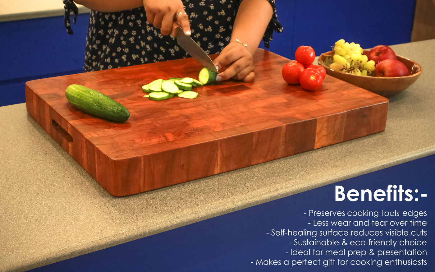 - DURABILITY: Teak wood is known for it's durability, which makes it the perfect wood for your kitchen cutting board; end grain wood minimizes wear and tear on both cutlery and the chopping block