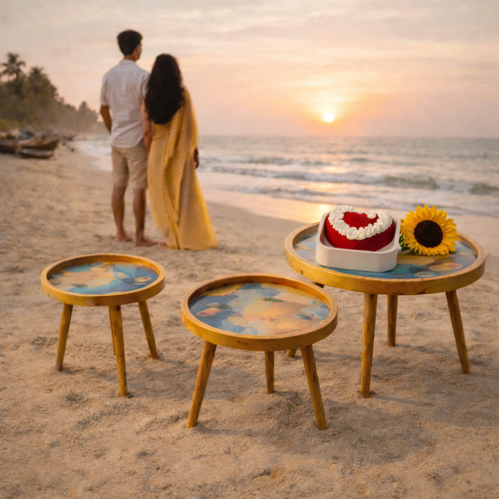 Set of 3 Wooden Nesting Coffee Tables – Handcrafted Mid-Century Style for Modern Living Rooms