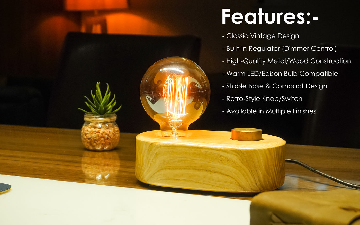 - Ambient Lighting: Equipped with a vintage-style Edison bulb that emits a soft, cozy glow.