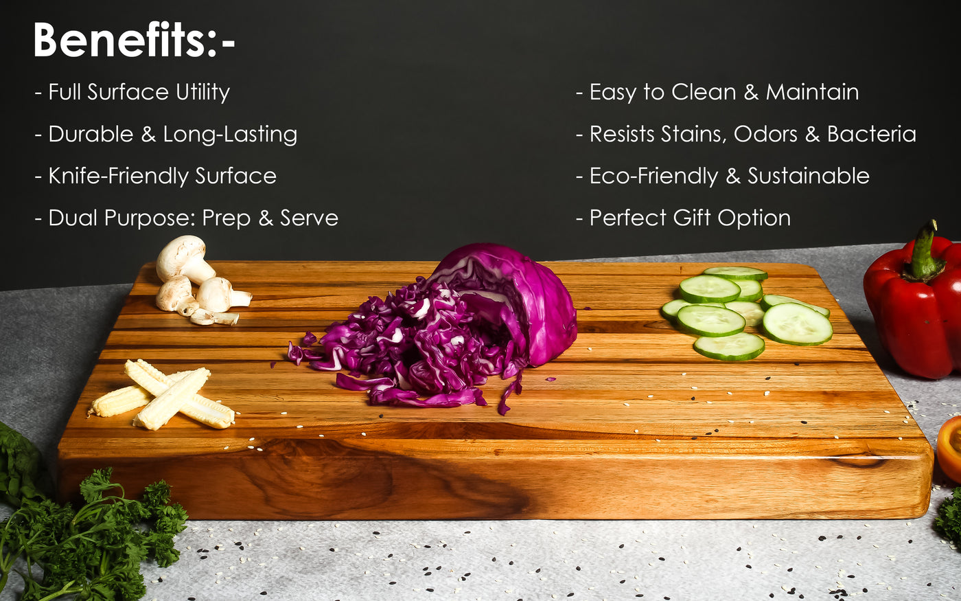 Teak Wood Chopping Board – Thick, Durable Cutting Block for Kitchen...