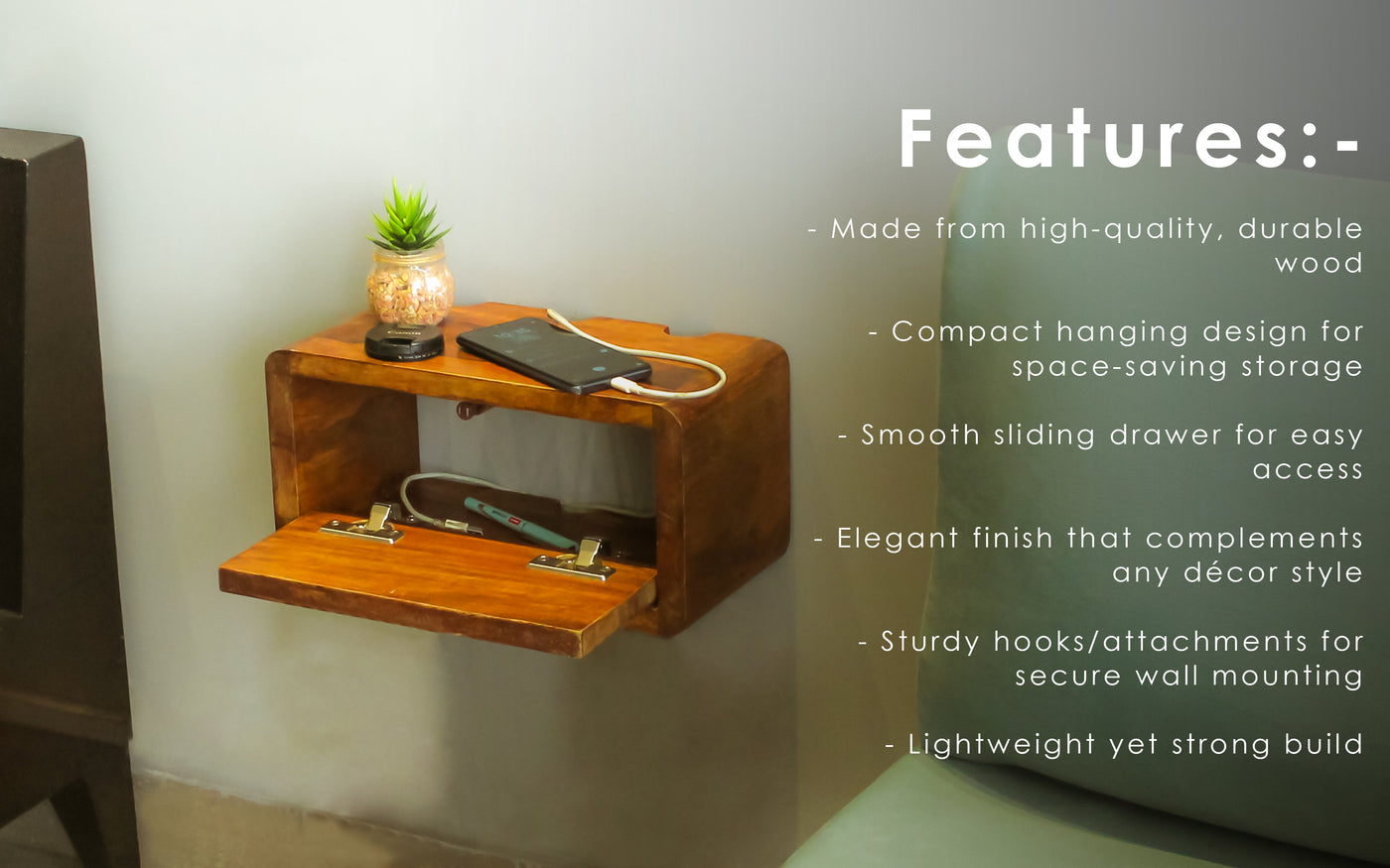 - ✅ Wall Mount Floating Shelf – Save floor space with this floating wall-mounted drawer shelf, ideal for bedrooms, living rooms, or office setups.