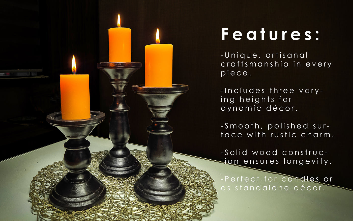 Wooden Handcrafted Candle Holders (Set of 3) - Black / Wood is backordered and will ship as soon as it is back in stock.