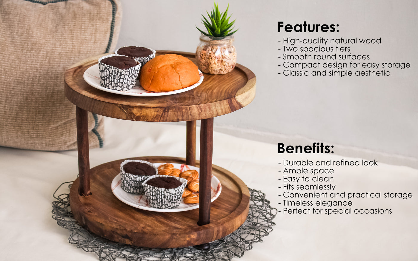 - 2-Tier Design for Ample Display: This 23x8 inch wooden cake stand features two tiers, perfect for displaying cakes, cupcakes, desserts, or appetizers at parties, weddings, or gatherings.