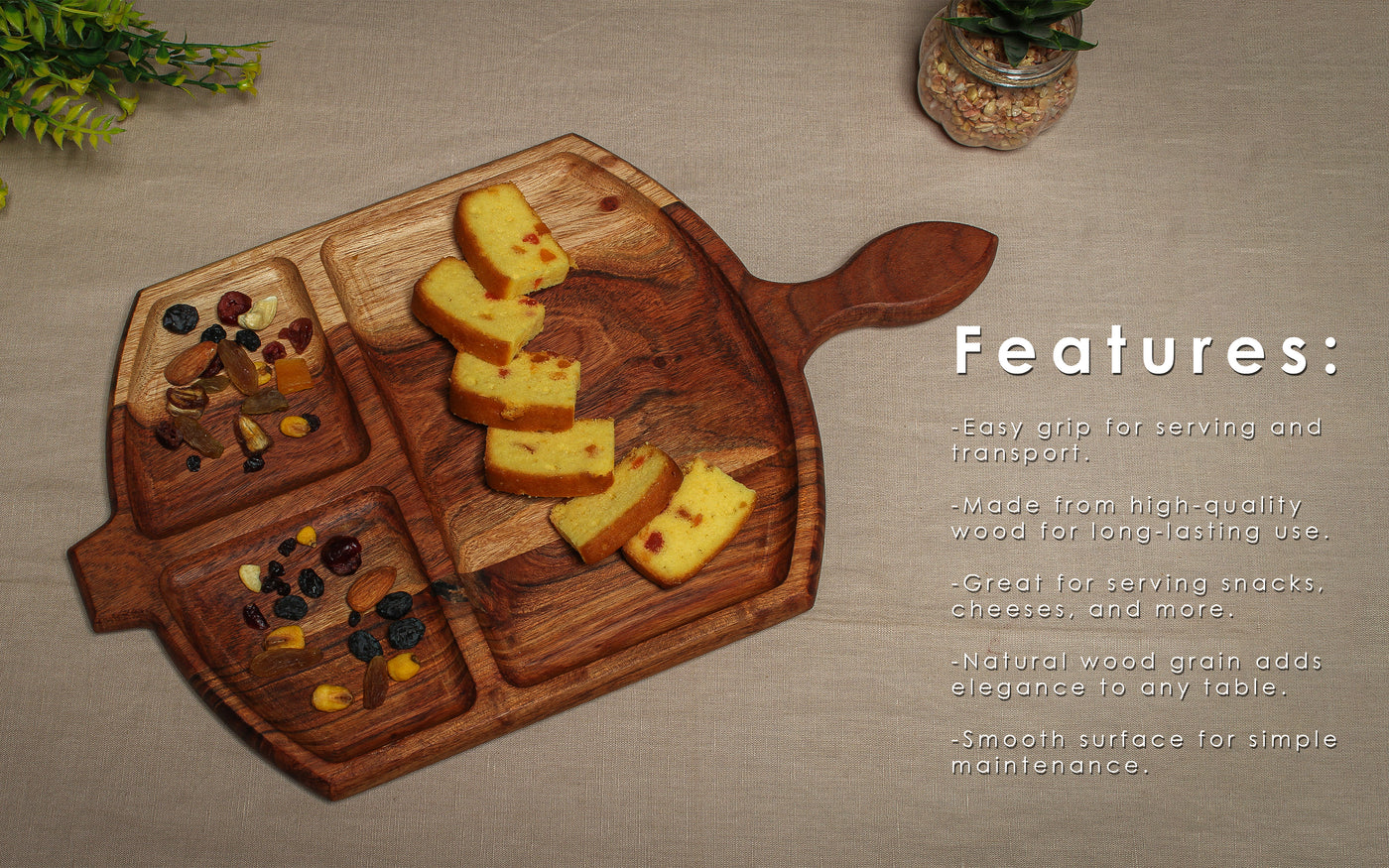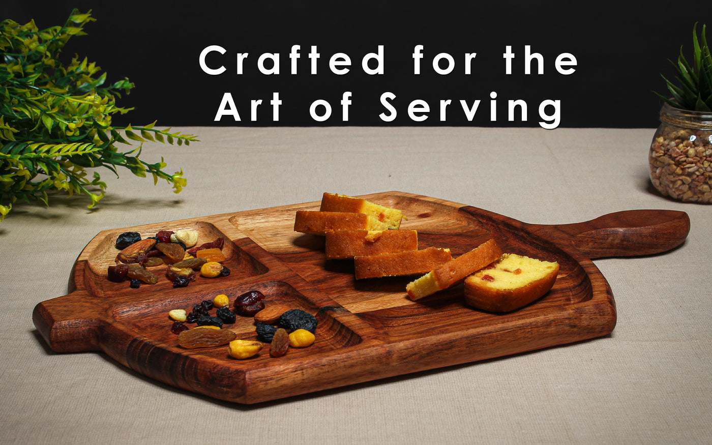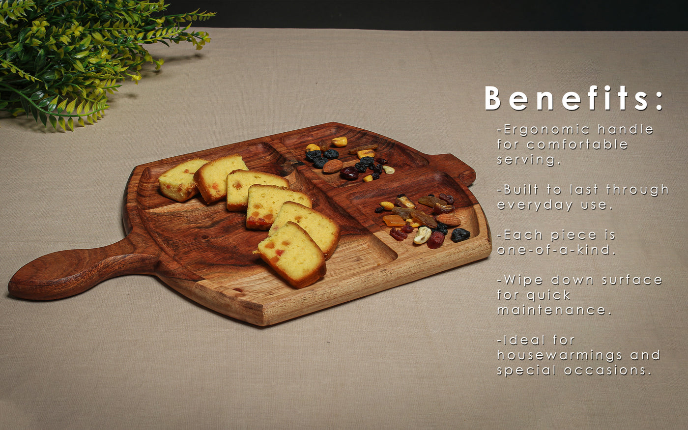 Serving Platter with Handle, Premium Acacia Serving Tray for Snacks and Housewarming
